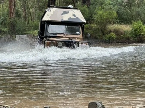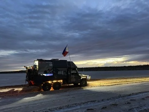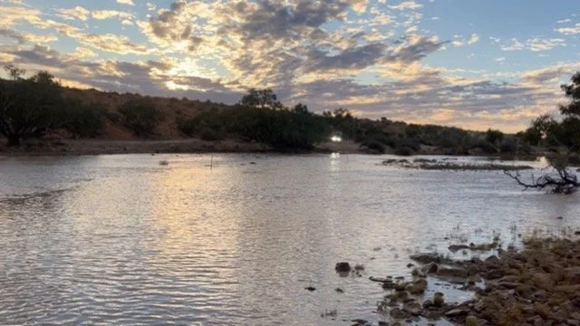 Crossing Eyre Creek in flood, Simpson Desert Expedition May 2024